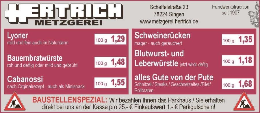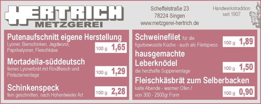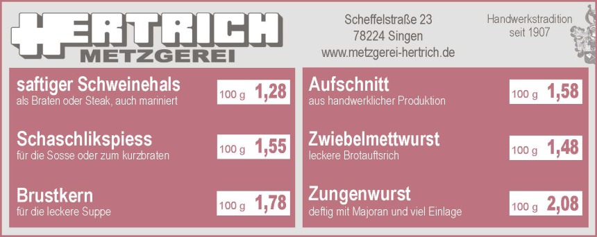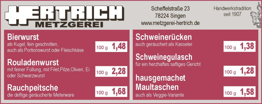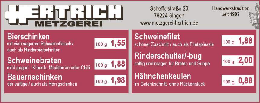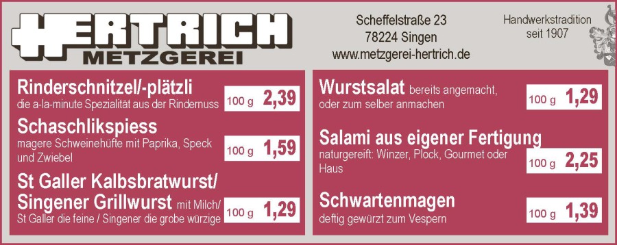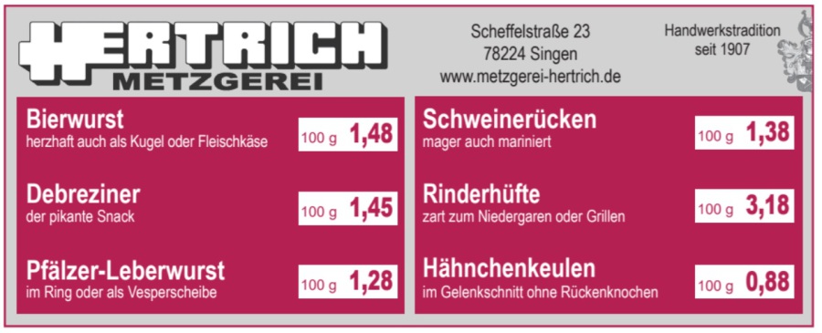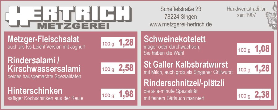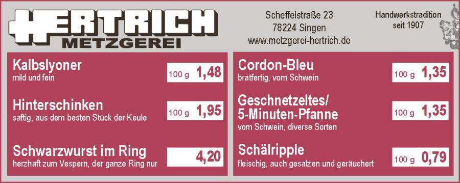 helles und junges Kalbfleisch, Hohentwieler Lammfleisch und Schweinefleisch vom Bauern unserer Heimat.