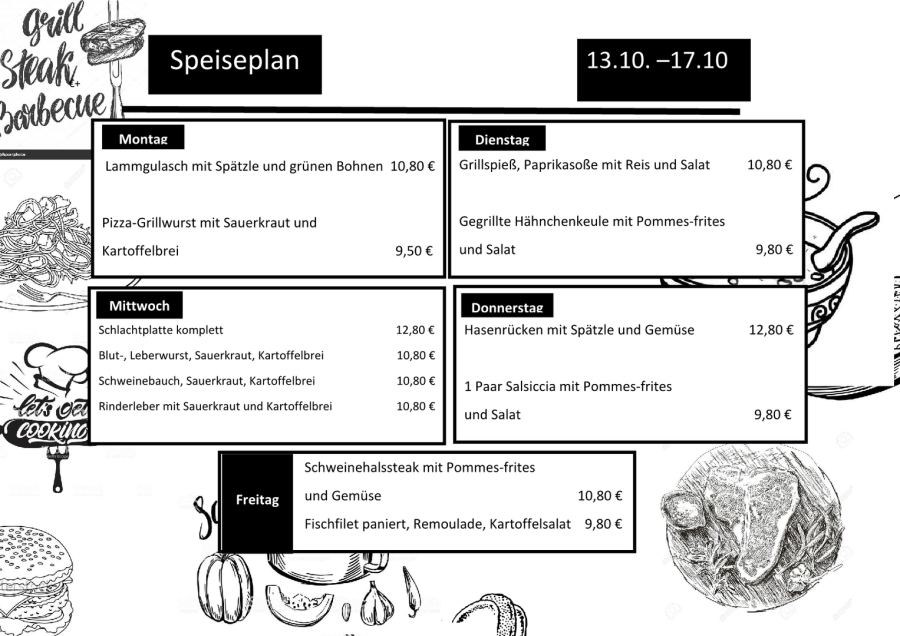 desweiteren haben wir eine grosse Auswahl an Käse / Salaten / und frischen Fisch ab