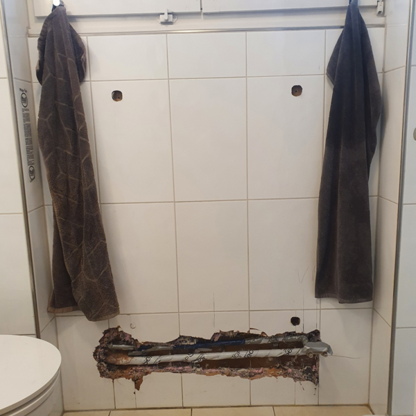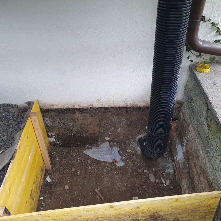 Wärmerohr für Vor und Rücklauf ist in der Wand