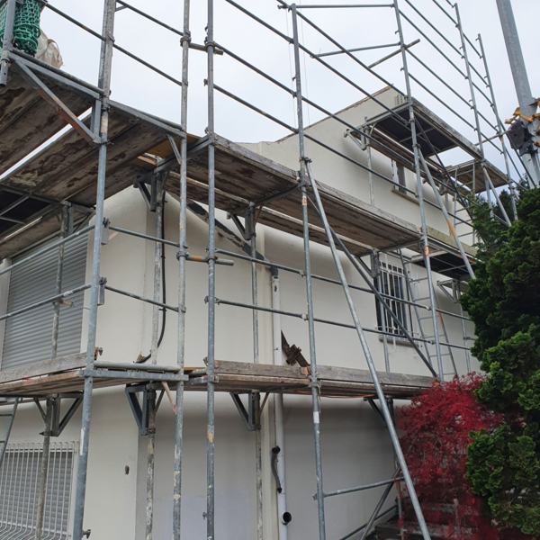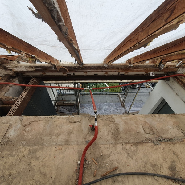 Umbau Ölheizung auf Wärmepumpe, Erneuerunh der Heizkörper leider nicht ohne Schäden in den Bädern, im DG muss der HZ_Vorlauf aufwändig provisorisch verrohrt werden